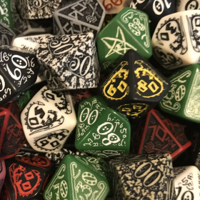 Besoin de D10 pourcentage (dés à dix faces). Ce produit vous permet de disposer d'un dé à 10 faces. Celui ci est aléatoire parmi la quasi totalité de la gamme Qworkshop en stock chez Dés en Folie. Les faces sont numérotées de 00 à 90.